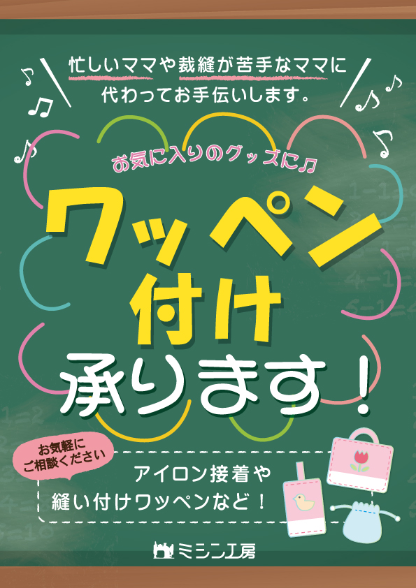 お裁縫が苦手な方や、家事や仕事で忙しくて時間が取れない…という方も、ワッペン付け1つから承りますので、ぜひご利用ください