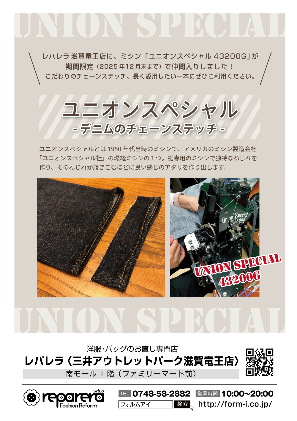 店舗ブログ 洋服のリフォームならフォルムアイ店舗ブログ一覧 店舗ブログ一覧 EBBETS FIELDS×SonnyLabelスタジャン修理(袖交換リメイク) 2025.11.13 阪急メンズ東京店 いつもご利用頂きありがとうございます。 リメイキングサロンの斎藤です! 11月に[...] VIEW MORE 【12/31㈬まで期間限定】パンツの裾上げ『ユニオンスペシャル 43200G』 2025.11.12 滋賀竜王店 こんにちは!洋服・バッグのお直し専門店「レパレラ」です🌟 【ユニ[...] VIEW MORE 【デニム/ファスナー修理】ボタンフライからファスナーに変更🪡 2025.11.4 池袋パルコ店 ご覧いただきありがとうございます。 洋服・バッグのお直し専門店【お直しラボ】です[...] VIEW MORE 【ジャケットの補修】袖口すり切れ/裏地やぶれ 2025.11.3 アル・プラザ京田辺店 ご覧いただきありがとうございます。 洋服・バッグのお直し専門店【リフォームブティ[...] VIEW MORE 【Repair】ジャケットやコートの袖口の擦り切れは“お直し”でキレイに✨ 2025.11.1 阪急三番街店 ご覧いただきありがとうございます。 洋服・バッグのお直し専門店【フォルムアイ】で[...] VIEW MORE 👜 [Bag Repair] 持ち手の付け根(根元)修理 2025.11.1 阪急三番街店 ご覧いただきありがとうございます。 洋服・バッグのお直し専門店【フォルムアイ】で[...] VIEW MORE [Leather] レザージャケットのお直し《袖丈つめ・やぶれ補修》 2025.11.1 阪急三番街店 ご覧いただきありがとうございます。 洋服・バッグのお直し専門店【フォルムアイ】で[...] VIEW MORE 【Repair】ウエスト/ゴム交換 2025.10.21 阪急三番街店 ご覧いただきありがとうございます。 洋服・バッグのお直し専門店【フォルムアイ】で[...] VIEW MORE [Ⅾress]ドレスのお直し承ります🪄 2025.10.17 阪急三番街店 ご覧いただきありがとうございます。 洋服・バッグのお直し専門店【フォルムアイ】で[...] VIEW MORE 過去の記事 古着ブルゾンをモダナイズ! 2014.5.14 阪急メンズ東京店 こんにちは。 阪急メンズ東京「リメイキングサロン」の小曾納です。 GWには銀座・[...] VIEW MORE スカートのほつれやすいところ 2019.2.15 アル・プラザ長浜店 JR長浜駅から車で約15分。長浜バイパス沿いのアルプラザ長浜店2階にあります、 [...] VIEW MORE LINEの友達登録で便利でお得な情報をGET♪ 2021.11.17 伊勢丹浦和店 リフォームブティック 伊勢丹浦和店をLINEの友だちに登録していただくと、便利で[...] VIEW MORE