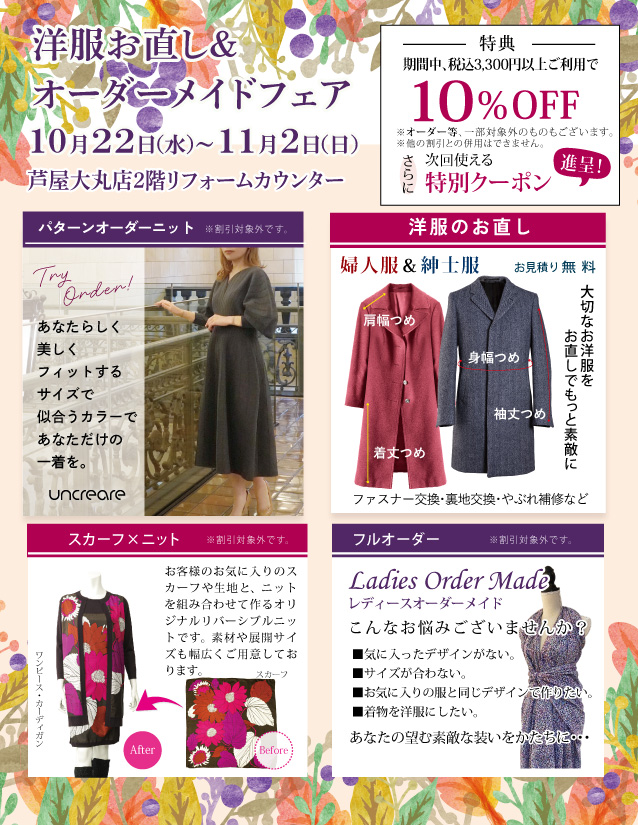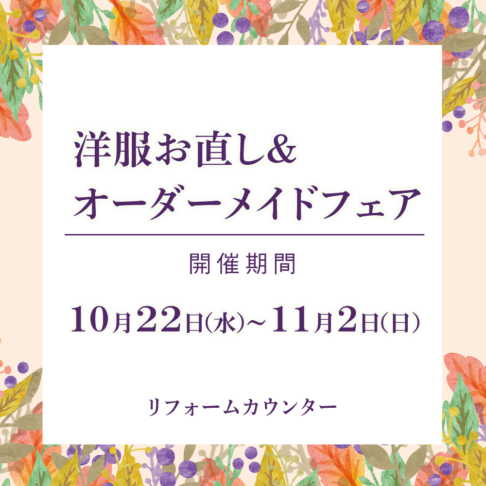 【10/22-11/2】洋服お直し&オーダーメイドフェア 開催✨