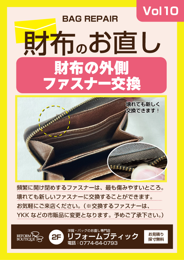 財布のファスナーが壊れても、新しいものに交換可能です。