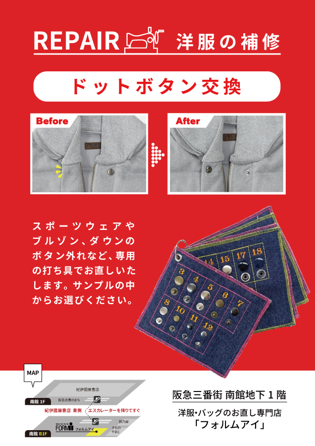 洋服・バッグのお直し専門店【フォルムアイ】です😊