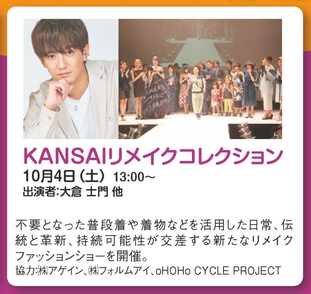 期間中 10月4日(土)に行われる KANSAIリメイクコレクションに、株式会社フォルムアイが出演することとなりました。
